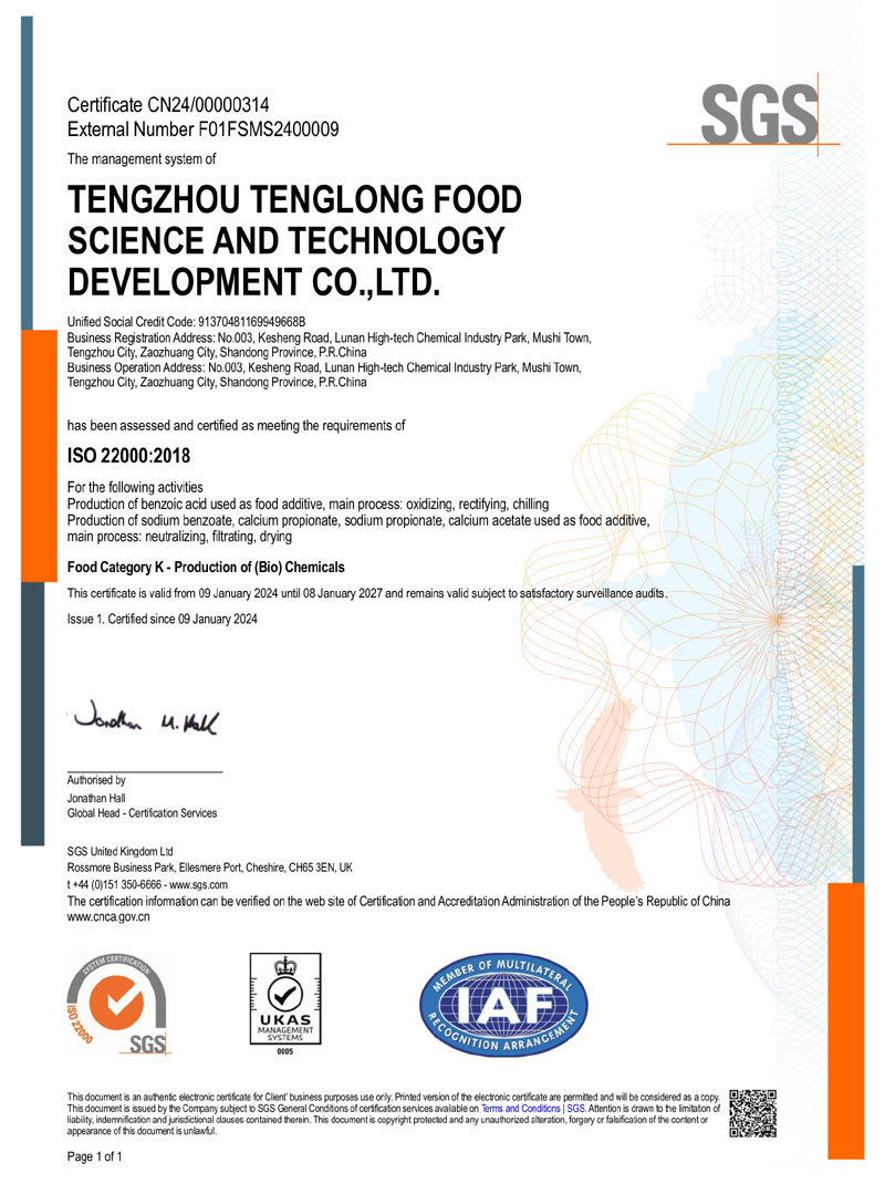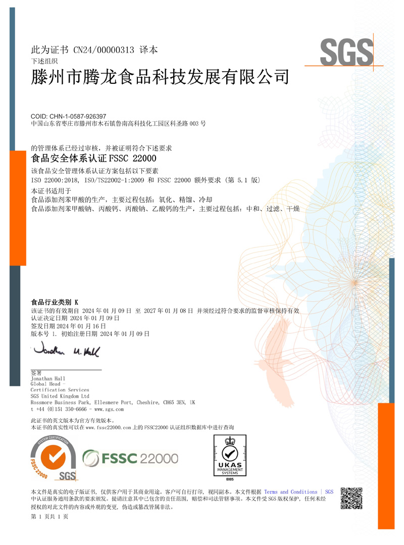 滕州市騰龍食品科技發(fā)展有限公司坐落在山東省滕州市木石鎮魯南高科技化工園區,成立于1996年,前身是滕州市騰龍化工有限責任公司,公司專業生產 苯甲酸,苯甲酸鈉,丙酸鈣,丙酸鈉和醋酸鈣等系列產品。